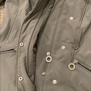 Calvin Klein Women’s size small. I got this as a gift like 4 years ago and only worn it twice. It is too big on me so I don’t reach for me. It’s been hanging in the closet for awhile. It js great quality and warm jacket. I would say the color is dark grey.