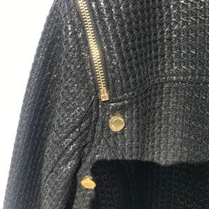 This super stylish jacket is so cute! Multiple gold zippers and buttons for a chic but sporty look. Shoulder zippers are functional for a peek-a-book look. 😉