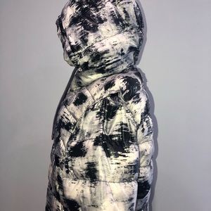 My most beloved jacket!! This is soft, multi-faceted, warm, and most comfortable jacket ever. I got a good use of it so it does have wear and the only noticeable flaw is on the shoulder where it has come undone, it can be easily fixed though. Jacket is reversible and has two designs on each side!!