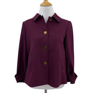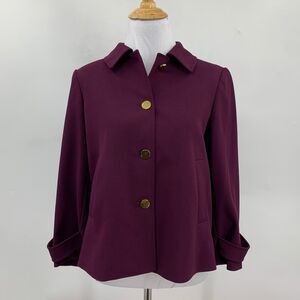 Calvin Klein Jacket Womens 8P Petite Eggplant Gold Buttoned Shoulder Pads Jacket