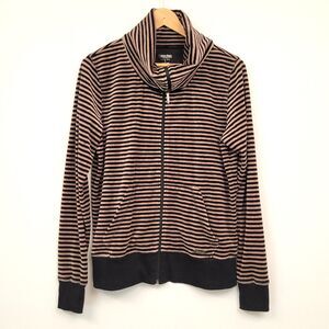 Calvin Klein Jacket Women's Large Brown Performance Quick Dry Striped Velour
