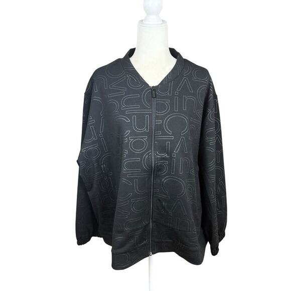 Calvin Klein Jacket Womens Size 2X Black Abstract All Over Logo Athleisure New