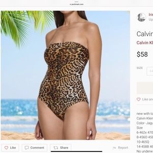 Gorgeous, Calvin Klein, strapless, swim suit, animal print. It has attachable straps that are also adjustable.