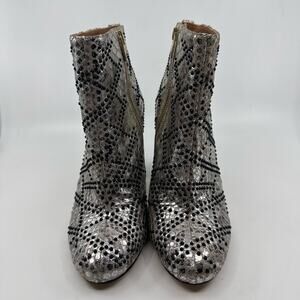 Calvin Klein 'Jamine' Studded Booties/Heels 34E2666 Zip-Up Women's US 7.5 Silver