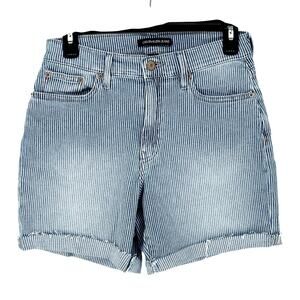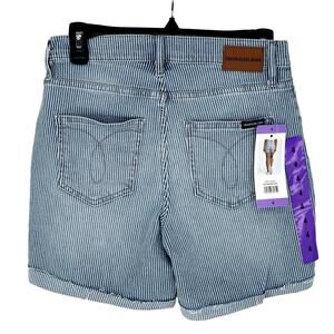 Calvin Klein Jean Shorts Womens 4 Blue Railroad Stripe High Rise Denim Cuffs New