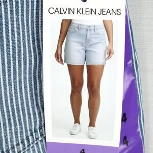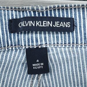 Calvin Klein Jean Shorts Women's 4 Blue Railroad Stripe High Rise Denim Cuffs New