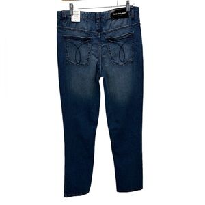 Calvin Klein Jeans Big Boys Slim Straight Distressed 403 Hollis Jeans - size 18 Condition: New with tags. No rips, tears or damage to the fabric noted. Pockets: 3 front / 2 back Lining: None Size: 18 Color: Med Blue Material: 98% cotton / 2% spandex Care: Machine wash cold / Tumble dry low Fabric Stretch: Up to 1/2 inch Closure: Zip front Measurements: (laying flat; not stretched) - 31" Waist - 1.5" Waist band - 10“ Rise (crotch to waist) - 40.5" Length (waist to hem) - 29" Inseam (crotch to hem) - 7“ Bottom leg opening WM-00047 A-