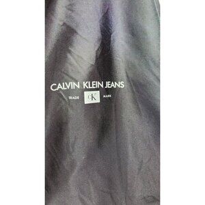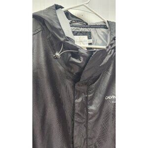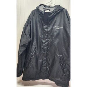 Calvin Klein Jeans Black Hooded Jacket XXL Lightweight Nylon Coat With Logo Prin