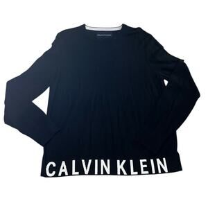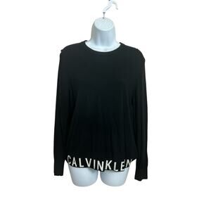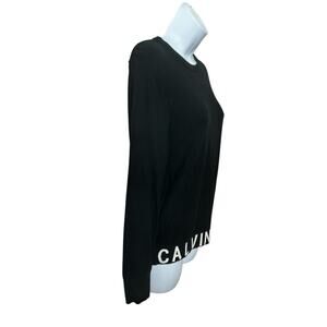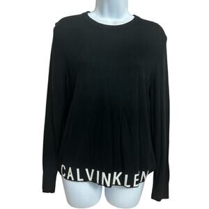 Calvin Klein Jeans Black Sweater Women's Sz M Hem Spell-Out Pullover Top