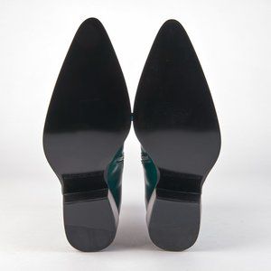 These are brand new in a stunning "bottle green" hue. They are rafted from high quality box-calf leather featuring a handy zip closure, and are fully leather lined. Note that they are a Men's size 9.5, but run a bit snug. I believe these were produced when Raf Simons was heading design for Calvin Klein. Near impossible to find new now!