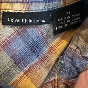 Calvin Klein Jeans Boys Shirt 3T Plaid Long Sleeve Button Down Pocket Casual