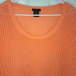 Calvin Klein Jeans Coral Orange Open Weave Sweater Size Large