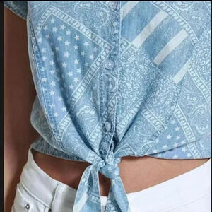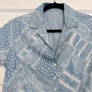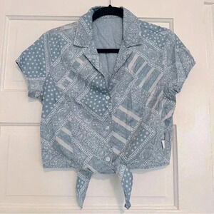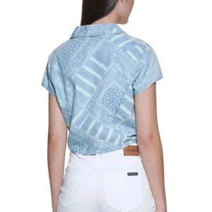 Calvin Klein Jeans Crop/Tie Top Print & Button Down Blue Medium