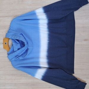 Calvin Klein Jeans Cropped Tie Dye Ombre Logo Graphic Hoodie Blue Cotton Blend