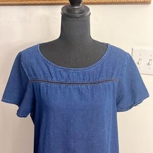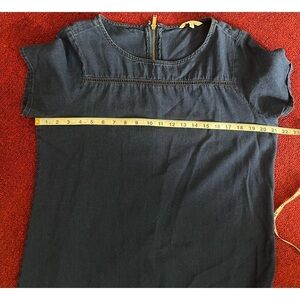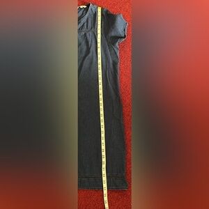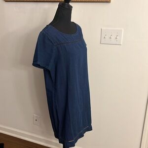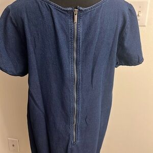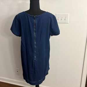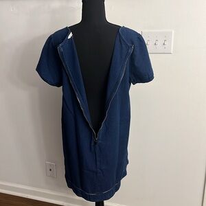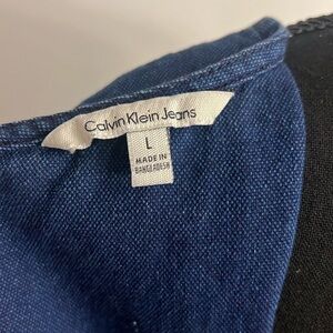 Calvin Klein Jeans Denim Dress with Back Exposed Zip, Sz. L. Gorgeous thread work in the collar and hem areas. Barely worn. No flaws. Beautiful with sandals, heels or boots. An excellent addition to any closet.