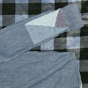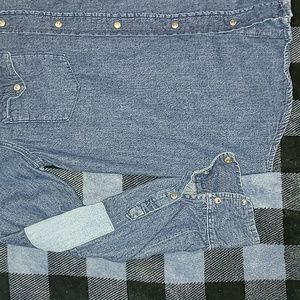 Calvin Klein Jeans. Denim, snap-button shirt. Patchwork flare. Women's Large.