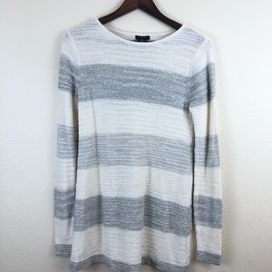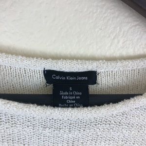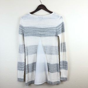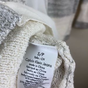 Calvin Klein Jeans White and Gray Knit Striped Faux Open Back Sweater