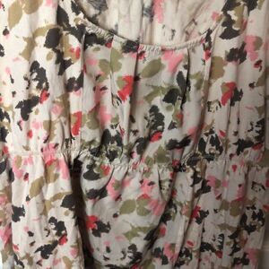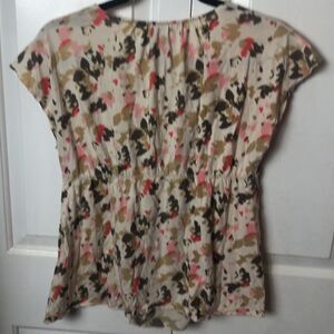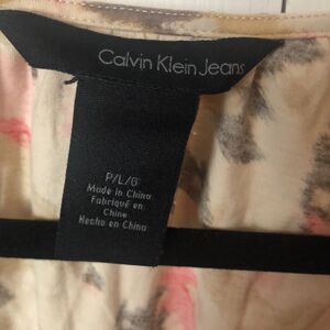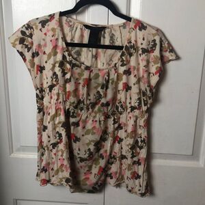 Calvin Klein Jeans Floral Elastic Waist Scoop Neck Cap Sleeve Blouse Cream Large