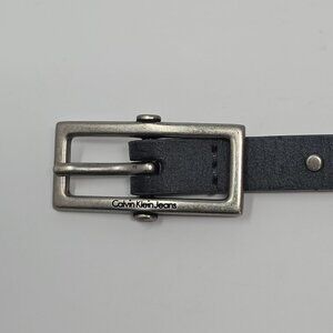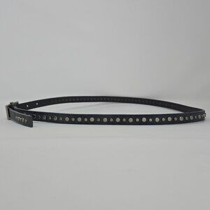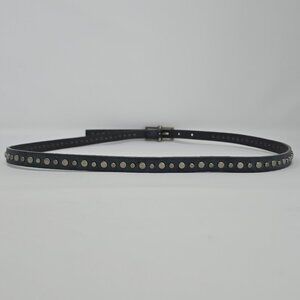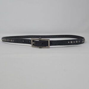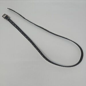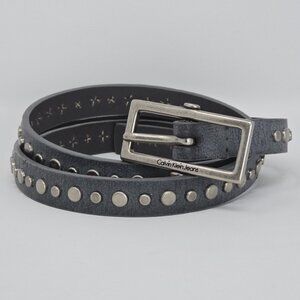 Add edgy sophistication to your wardrobe with this Calvin Klein Jeans studded belt. Made in a versatile gray with silver-tone hardware, this women’s belt features a rectangular buckle engraved with the Calvin Klein Jeans logo. Its slim 5/8" strap is detailed with evenly spaced silver studs that create a modern, rock-inspired style. The belt measures 44" long with 5 holes ranging from 36" to 40", making it perfect for wearing at the waist or hip. Material is not specified. This gently used piece shows light wear but remains in good condition, ideal for styling with jeans, cinching dresses, or layering over oversized blazers.