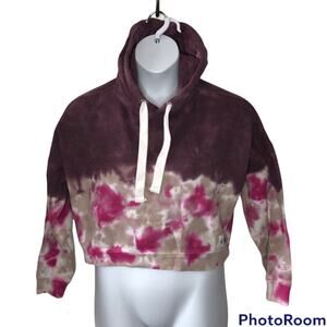 This Calvin Klein Jeans Tie Dye Cropped Hoodie is in excellent used condition! The purple, tan, and pink ombré tie dye is so unique and eye-catching. The darker top and hood beautifully fade to a lighter waist.