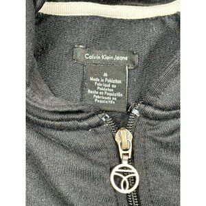 Calvin Klein Jeans Hoodie Womens Size Medium Black White Zip Front Jacket