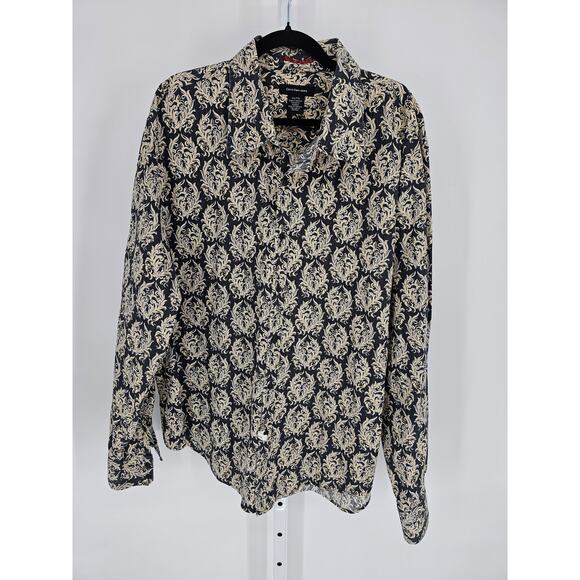 Calvin Klein Jeans Men's Black Abstract Pattern Long Sleeve Button-Down Shirt Size XXL