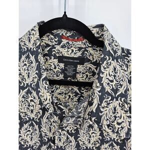 Calvin Klein Jeans Men's Black Abstract Pattern Button-Down Shirt Size XXL