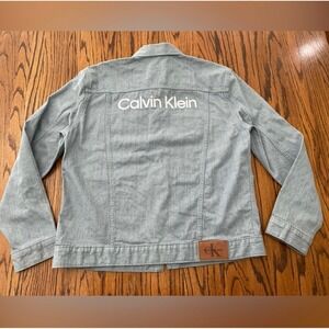 Calvin Klein Jeans Mens Large Light Blue Denim Trucker Jacket Embroidered NWT