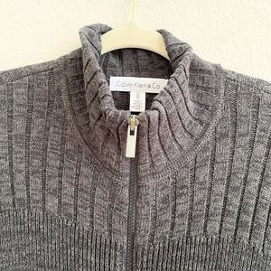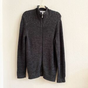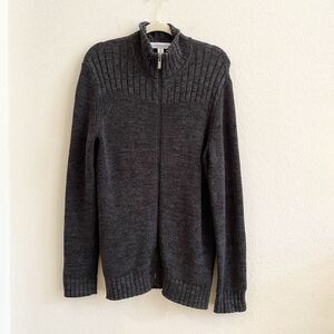 Calvin Klein Jeans Mens Long Sleeve Full Zip Ribbed Sweater Dark Grey Medium