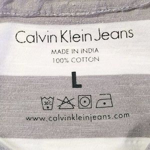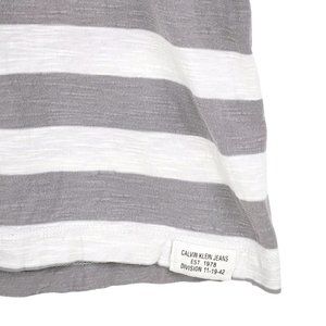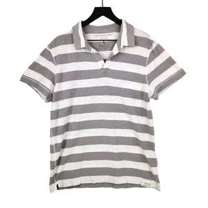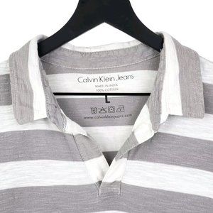 Calvin Klein Jeans Mens Polo Shirt Size Large Gray White Striped Cotton Textured