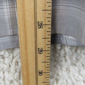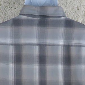 Pre-Owned Condition! 60% Cotton/40% Polyester. Handsome Multi-Shade Gray/White Print Design Shirt with Gray Glossy LOGO Brand Buttons(spare Button) Double Chest Pockets.