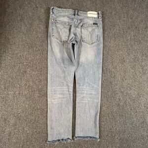 These **Calvin Klein Jeans Mid Rise Slim Distressed Jeans** in **Size 29x32** offer a stylish blend of comfort and modern edge. Designed with a **mid-rise waist** and a **slim fit**, they provide a flattering, streamlined look that pairs well with casual or dressy outfits.