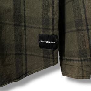 Calvin Klein Jeans Olive Green Plaid Flannel Button Up Shirt Men’s S Cotton