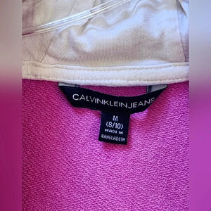 Calvin Klein Jeans Pink Zip Hoodie, Side Pockets, Logo Arms sz Medium (8-10)