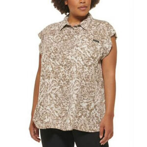 Calvin Klein Jeans Plus Sz 2X Women's Print Button Up Shirt Sleeveless NWT.