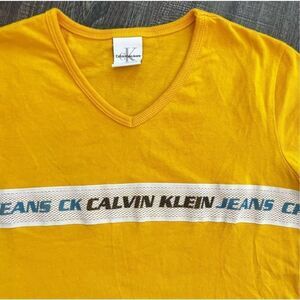 Calvin Klein Jeans Semi-Crop Yellow V-Neck Top Size M Women’s Yellow Logo