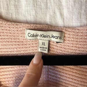Calvin Klein Jeans Shell pink tunic length cotton ribbed sweater v neck XL