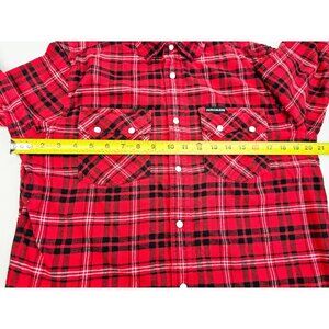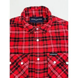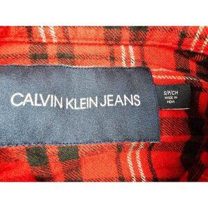 Calvin Klein Jeans Size Small Men Red Black White Flannel Snap Plaid Pocket Logo