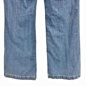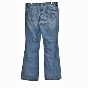 Calvin Klein Jeans - these are the Skinny Flare style in ladies size 31/12. Medium blue wash - well worn softness - 99% cotton with a hint of spandex for stretch - 5-pocket style with zipper & button close. These show some fading and light whiskering across the lap - no significant damage or flaws - cute style!