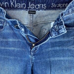 Calvin Klein Jeans Straight Leg Mid Rise Denim Blue Jeans 30/10 EUC. In excellent condition. Zipper and button work well as shown in photo. When laid flat, these jeans measure 15” across the waist, they have a rise of 9” and an inseam of 30