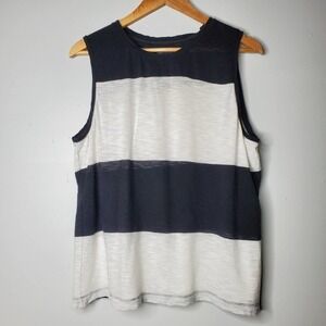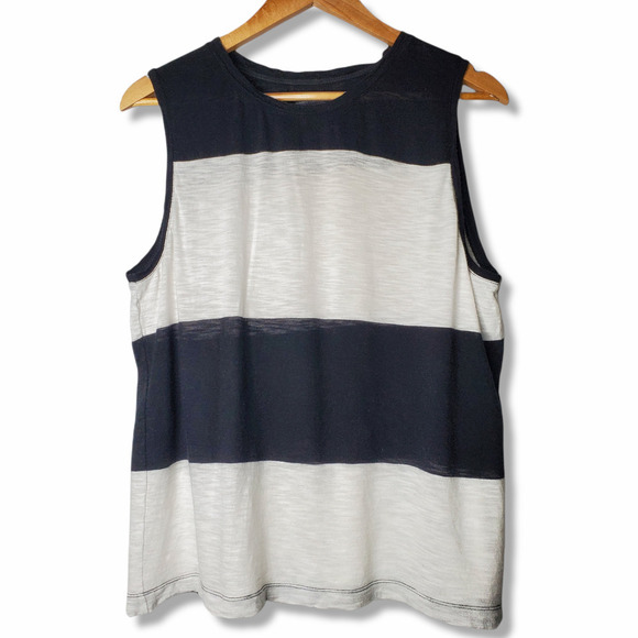 Features : wide horizontal stripe, sleeveless, black & white, tank top, muscle tank, lightweight, sheer, summer