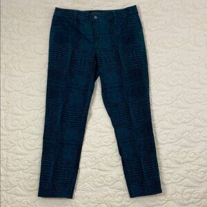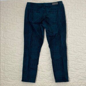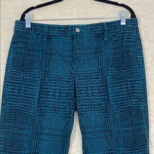 Calvin Klein Jeans. Women's tag size 16 plus size. 97% cotton, 3% elastane. Dark teal and black patterned. Mid Rise. Slightly tapered leg.