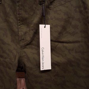 The Ultimate Skinny jean from Calvin Klein in an army olive camo print.