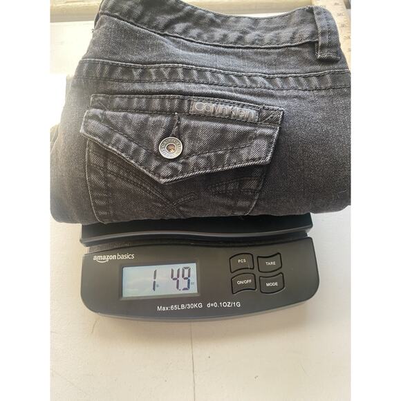 Calvin Klein Jeans Womens Size10 Black "Lean Boot" Stretch Denim. 5 pocket, back pockets are flap pockets/ button shut. Good used condition. No rips or stains. Clean hems. Fading is purposeful.