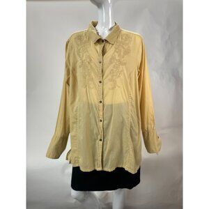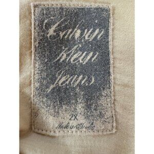 Calvin Klein Jeans Womens Beige Embroidered Button-Up Long Sleeve Shirt 2X