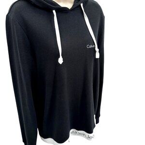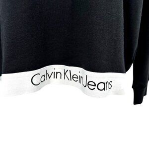 Calvin Klein Jeans Womens Black Hoodie W/ White Logo Hem Size M
