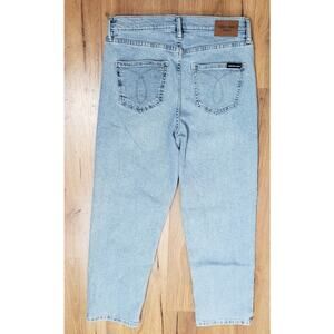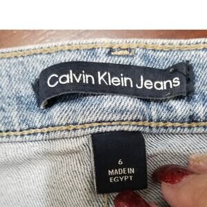 Calvin Klein Jeans Women's Blue Denim - Size 6; Material - Cotton & Spandex; Care -Machine Wash Cold, Gentle, Tumble Dry, Made in Egypt, Mid Rise, Straight Leg, Flat Front, 5 Pockets, Belt Loops, Zipper, Button,