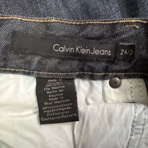 These Calvin Klein Womens Skinny Jeans in size 26x28 offer a sleek, modern silhouette in a flattering dark wash. Made with Repreve recycled fibers, theyre soft, stretchy, and sustainable. A mid-rise cut with subtle fading and minimal detailing makes them ideal for everyday wear, whether you're dressing them up with heels or keeping it casual.