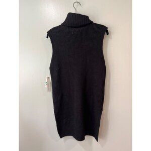 Calvin Klein Jeans Women's Sleeveless Turtleneck Sweater Vest Size L Black Ribbe