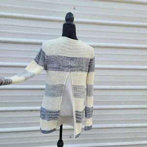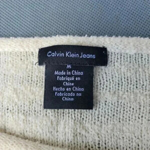 Calvin Klein Jeans Womens Striped Split-Back Sweater Contrast Ivory Gray M